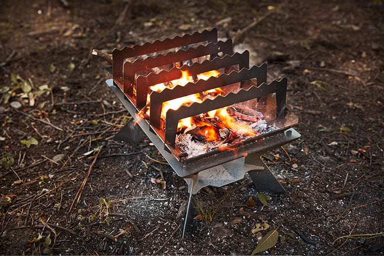 B5サイズで持ち運びが楽々。桐生織の帆布からパーツを取り出し、組み立てる楽しさを味わった後は肉厚のプレートでいつものステーキが最高に美味しく焼けます!ご夫婦、恋人、お仲間と至福のひと時をお過ごしください。